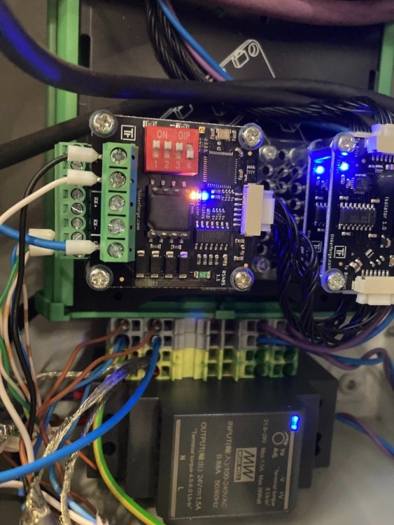 Vielen Dank für das schnelle Feedback! Meine DIP-Schalter waren falsch, ich hatte diese auf Half-Duplex Non-Terminated. Das wäre die korrekte Einstellung wenn das Bricklet als Slave betrieben würde? Ich habe sie jetzt auf Half-Duplex Terminated umgestellt. Der Sensor sollte korrekt angehängt sein, siehe Bild unten. Habe die Leitungen trotzdem mal umgehängt jedoch ohne Erfolg. Die Sensoren sind neu die Baudrate und die Adresse sollten also stimmen. Ich habe trotzdem sicherheitshalber die Sensoren auf Werkseinstellungen zurückgesetzt. Leider kann ich immer noch keine Messwerte auslesen. Fällt Ihnen noch etwas weiteres auf was nicht passen könnte? Ansonsten, da anscheinend beim Bricklet soweit alles korrekt eingestellt ist, setze ich mich sonst mit dem Hersteller des Sensors in Verbindung und Frage da nach ;) -