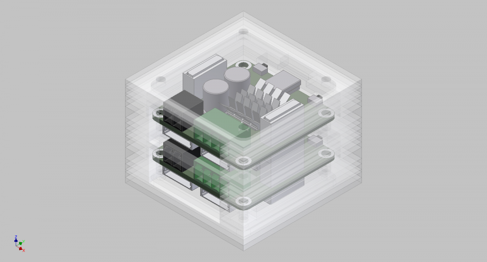 Schichtstapel hab ich schon gemacht. Hatte auch einen kleinen Lüfter besorgt, den wollte ich an einer Seite dran machen und über einen Kanal für Belüftung sorgen. Das ist hier noch nicht berücksichtigt.
