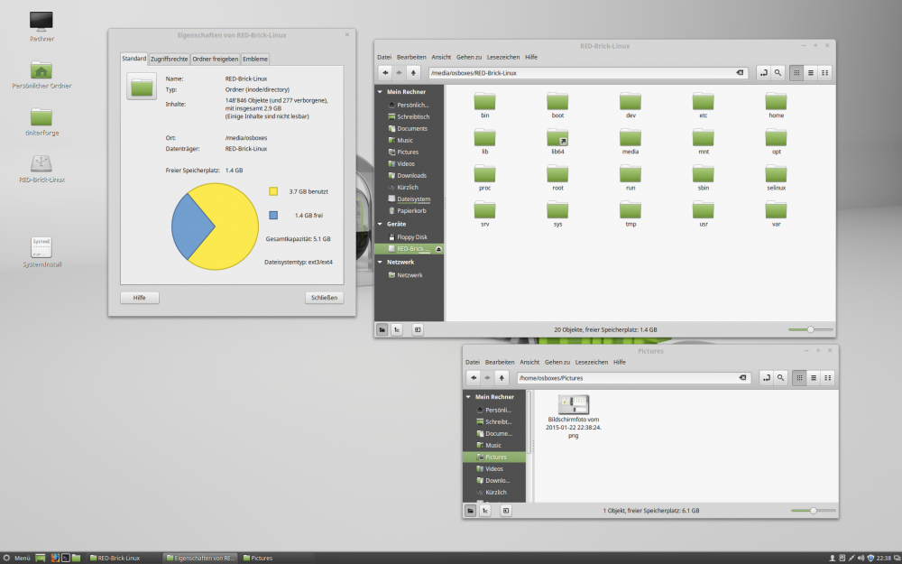 Der RedBrick macht Ärger - oder macht zumindest nicht das was erwartet. Ich habe mir eine 8GB SanDisk Ultra microSDHC besorgt und im Linux Mint wie in der Anleitung beschrieben das RedBrick Image 1.3 aufgespielt. Das dauerte in der Konsole eine gefühlte Ewigkeit, aber schlussendlich kam der Befehl zu einem Ende und es waren Daten auf der microSD Karte aufgespielt. Die microSD Karte meldete sich fortan im Linux Mint als "RED-Brick-Linux". Ich habe diese microSD Karte dann im RedBrick installiert und diesen per USB an den PC angeschlossen. Resultat: - blaue LED leuchtet - rote LED blinkt kurz auf und erlöscht dann gleich wieder - kein Lebenszeichen einer grünen LED - RESET Button während 5s: blaue LED schaltet ab - wieder RESET Button: blaue LED schaltet wieder ein Im BrickViewer: - kein Lebenszeichen des RedBrick Das ganze dann an den HDMI Fernseher angeschlossen, bestromt über USB: - kein Lebenszeichen am HDMI - gleiches Verhalten der LEDs wie am PC Im Anhang befindet sich ein Bild der Daten auf der microSD Karte, so wie sich diese im Linux Mint präsentiert. -> Kann da jemand etwas nicht passendes erkennen? -> irgendwie scheinen die Startdateien zu fehlen. -> Welche Dateien müssten sich im root Verzeichnis der microSD Karte befinden? Danke für Antworten. Gruss! -