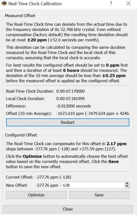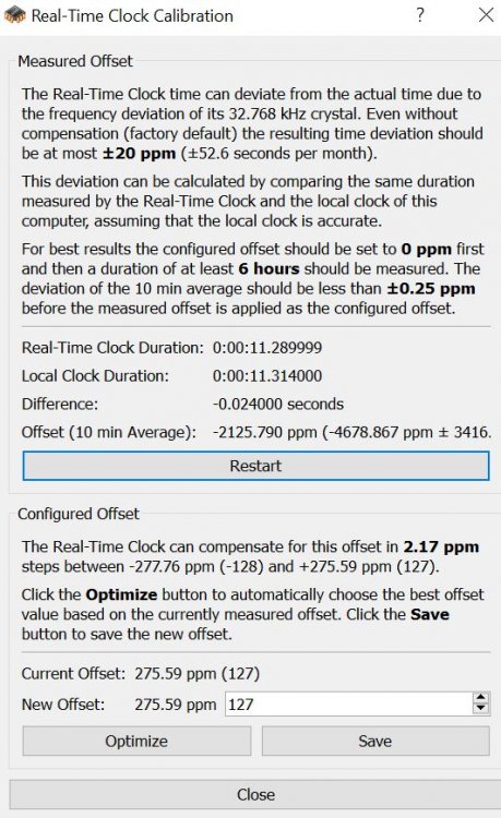 Hallo! Vielen Dank für deine schnelle Hilfe und die Info. Ich habe das Bricklet erneut konfiguriert und so lange laufen lassen, bis die Werte in den angegebenen Bereich gefallen sind - und jetzt ein paar Tage danach scheint die Uhrzeit super zu laufen. Herzlichen Dank nochmals, bis wahrscheinlich bald :-) Stefan