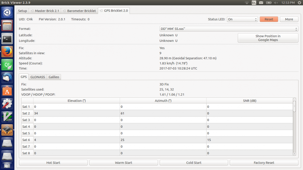Hallo, die Funktion gps_v2_get_satellite_status funktioniert nicht, wenn man versucht den Status der GLONASS Satelliten abzufragen. Könnt Ihr diesen Bug reproduzieren? Uwe -