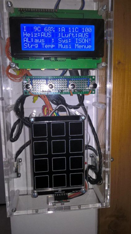 Hallo Theo, es freut mich dass Dir mein Projekt gefällt. Zu Deinen Fragen: Die Ports der beiden 16-Fach-IO dienen als Eingänge (elektrotechnisch) für Öffner / Schließer von Lichttastern, Fenster und Türkontakten, Schwimmerschalter … Somit kann Licht auch ohne APP oder Webbrowser ein und ausschalten … Der PTC dient zum Messen der Außentemperatur. Immer ein Humidity -Bricklet und ein „Temperatur“-Bricklet (im Gebäude der normale Temperatur -Bricklet, außerhalb ist es der PTC) liefern die Daten um die Absolute Luftfeuchte (innen und außen) zu berechnen. Meine jetzige Konfiguration hat einen Schönheitsfehler (dieser ist mir erst in der Testphase aufgefallen). Der PTC Temperatur Fühler und das Temperatur Briklet liefern teilweise Werte mit bis zu 1 Grad unterschied. In der aktuellen Version habe ich dies per Holzhammer gelöst in dem ich einen festen Offset hinterlegt habe. Ähnlich verhält es sich auch bei den Humidty Bricklets. In der V2 soll dies über eine „Kalibrierfunktion“ genauer gelöst werden. Bei Berechnung der absoluten Luftfeuchte als Basis für die Luft-Entfeuchtung Steuerung muss hier korrigierend eingegriffen werden. Menü-Funktion mit dem LCD 20x4: Ursprünglich war der Plan alle Funktionen über die 4 Tasten des LCD 20x4 zu steuern. Der erste Taster (links) des Display dient dazu um in die Menü-Hauptfunktion zu gelangen. Wenn man sich noch im Startmenü befindet erreicht man mit den restlichen 3 Tasten die wichtigsten Menüpunkte / Funktionen wie Frostschutz / Lüftung ….. Wenn man die „Menü-Taste“ betätigt gelangt man in die verschiedenen Submenüs (z.B. Alarmsystem, …..) Nachdem ich im Laufe der Entwicklung immer mehr veränderbare Variablen bedienen wollte, stieß ich an die Grenzen des LCD 20x4 mit seinen 4 Tasten. Um das ganze auch wieder besser bedienen zu können, führte ich eine direkte Menüauswahl per Nummer ein (Menü 00-13). Die Eingabe erfolgte über das Multi-Touch. Um eine „versehentliche“ Bedienung zu verhindern, muss man erst das Display mit einer der 4 Tasten des LCD 20x4 aktivieren (die Hintergrundbeleuchtung des Display dient als „boolean“ ob Eingaben des Multi-Touch genutzt werden sollen oder nicht). Für die Hintergrundbeleuchtung läuft ein Timer der sich verlängert wenn eine Taste betätigt wird. Wenn ca 20 Sekunden keine Eingabe erfolgt, wird das Display abgeschaltet und somit auch keine Eingaben des Multi-Touch mehr ausgewertet. Die 12 Channel des Multi-Touch belegen die Ziffern 0-9 und die Zeichen * und #. Zum bestätigen einer Zahlen/Zifferneingabe muss man 2 x die * - Taste betätigen. Soll das letzte Zeichen der Eingabe gelöscht werden muss 1 x die # - Tastet betätigt werden. Wenn die komplette Eingabe gelöscht werden soll, muss man 2 x die # Taste betätigen. Je nach Menü und dessen Funktion, können verschieden lange (und auch im Wert begrenze) Zahlen eingegeben werden. Beispiel : Bei Änderung der Raumtemperatur können nur 2-Stellige Werte in einer Range von 5-20 (Grad Celsius) eingegeben werden. Hingegen bei die Pin-Eingabe (System-Parameter oder Alarmsystem) kann eine bis zu 18 Stellige Zahl eingegeben werden. Randbemerkung: Bei Fehleingabe der Pin wird immer ein stiller Alarm ausgelöst Zum Thema Github: Für mich ist es das erste mal, daß ich aktiv in einem Forum „Poste“, daher möchte ich das ganze langsam angehen lassen. viele Grüsse Stefan -