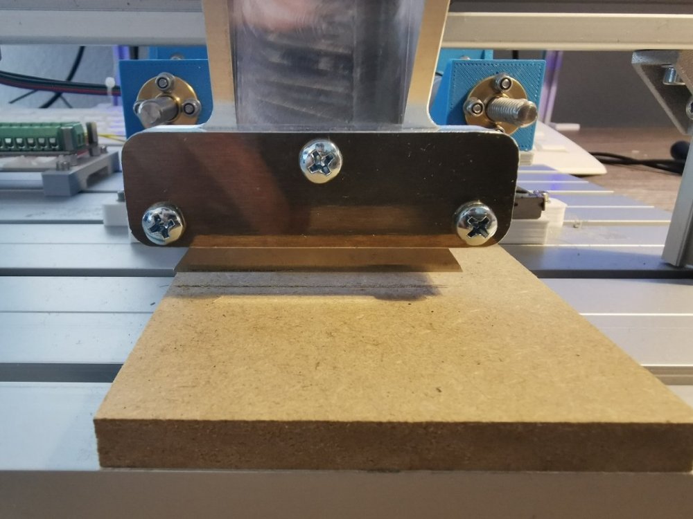 Hallo Zusammen, für ein Projekt muss ich verschiedene Kunststoffplatten in sehr sehr kleine (ca 1 bis 2mm) große Stück schneiden. Das ganz sehr gleichmäßig und in größeren Mengen. Ich hab verschiedene Schnittmöglichkeiten ausgetestet, am ende bin ich dabei gelandet die Kunststoffplatten mit einer scharfen klinge durchzudrücken. Die Guillotine Idee war geboren. Ein 3D Drucken, CNC Fräsen (extern gemacht), ein wenig basteln und fertig war Sie. Der Prinzip ist recht einfach. Ein Starker Servo drück eine Teppichmesser klinge mit viel Kraft in die Kunststoffplatten und Trennt sie damit sauber. Über zwei Stepper kann ich den Anschlag für die Kunststoffplatten sehr genau einstellen. Verbaut sind: Step-Down Power Supply Master brick Servo Brick Stepper Brick WIFI Master Extension 2.0 Dazu noch ein OLED 128x64 Bricklet 2.0 auf dem verschiedene Werte angezeigt werden IO-16 v2 an dem der Entstop für den Anschlag hängt und 4 Fußschalter über die das ganz gesteuert wird Die Steuerung läuft über MQTT und dann Node-Red. Ich werde die Tage die Guillotine noch mal in Aktion Zeigen und dann etwas mehr zur Steuerung schreiben. Gruß