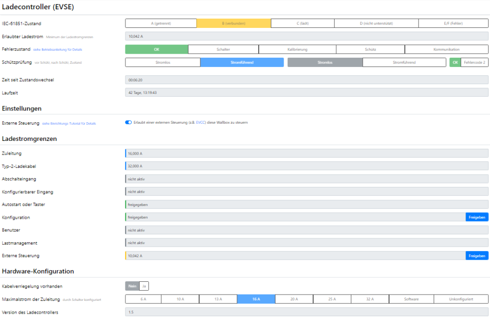 HalliHallo, endlich is'ser da unser Enyaq und ein paar "Ladeversuche", um die Logik zu verstehen und die ersten beiden Ladungen sind gelaufen 👍. Und wie kann es anders sein 😉, die ersten Fragen tauchen auf... Könntet Ihr mir bitte erklären, warum ein Ladevorgang nicht wieder von selbst startet, wenn eine Phasenschaltung erfolgt ist? Aktuell sieht das so aus: Auch ein Freigeben der Stromstärke unter "externe Steuerung" ändert den Status nicht. Erst nach Entriegeln und Neustecken des Ladesteckers startet der Ladevorgang mit der gewünschten Ladeleistung und Phasenanzahl. Ich würde das gerne analysieren und eingrenzen, um es besser zu verstehen, weiß aber noch nicht auf welche Werkzeuge ich zurückgreifen soll. Wozu dient denn die Freigabe der Stromstärke unter "externe Steuerung"? Wenn die Phasenumschaltung läuft und automatisch schaltet, wird dort immer wieder ein Wert angezeigt, der NICHT freigegeben ist. Funktionieren tut es dann ja trotzdem... Ich hoffe, ich lerne schnell und gehe Euch nicht allzu sehr auf die Nerven🫡 -