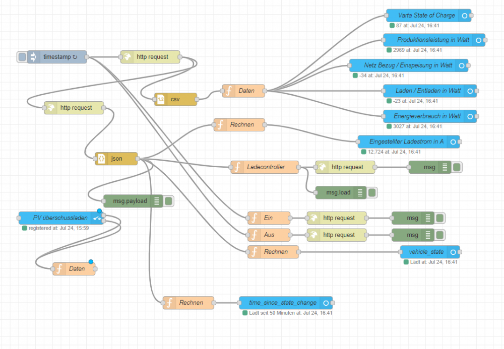 Moin ich habe homeassistant auf meinem NAS Laufen musst nur bei beim http request deine ip anpassen. bekommst ein schönes payload wo du deine daten rausziehen kannst. [{"id":"3072e780023c9660","type":"inject","z":"d7a5456d.669e78","name":"","props":[{"p":"payload"},{"p":"topic","vt":"str"}],"repeat":"20","crontab":"","once":false,"onceDelay":0.1,"topic":"","payload":"","payloadType":"date","x":330,"y":880,"wires":[["69de9a27d2fc4d31"]]},{"id":"69de9a27d2fc4d31","type":"http request","z":"d7a5456d.669e78","name":"","method":"GET","ret":"txt","paytoqs":"ignore","url":"http://192.168.178.24/evse/state","tls":"","persist":false,"proxy":"","insecureHTTPParser":false,"authType":"","senderr":false,"headers":[],"x":530,"y":880,"wires":[["752dc485127bb318"]]},{"id":"752dc485127bb318","type":"json","z":"d7a5456d.669e78","name":"","property":"payload","action":"","pretty":false,"x":710,"y":880,"wires":[["6b6c6e9bcc3e2f68"]]},{"id":"6b6c6e9bcc3e2f68","type":"debug","z":"d7a5456d.669e78","name":"","active":true,"tosidebar":true,"console":false,"tostatus":false,"complete":"true","targetType":"full","statusVal":"","statusType":"auto","x":850,"y":880,"wires":[]}] -