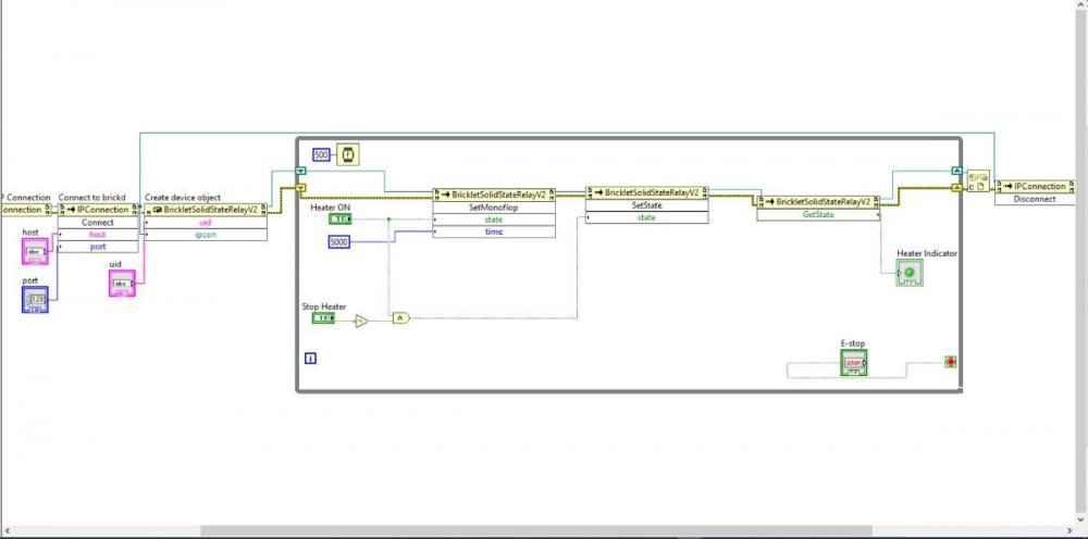 Hello , i'm trying to run "Heating system Project" using Tinkerforge system (using Master Bricks3.0 , Solid State Relay Bricklet connencted to the heaters with SS-RELAY) programmed throw Labview. The LabView Programming and simulation working perfect! the Problem is if the System is running and heater are ON and Labview collapsed the Heater keep the Signal On as it was the last signal came from Labview and the only way to get it off again is to run the labview then bring system to safe state or throw Brick viewer application. Now as i want to run the system stable and safe want to find a way that makes the Master Bricks not to send/keep any Signals as soon as Labview collapsed or any other propability could happen. IHow could i solve this issue? is there anything that i could do with Labview or Hardware solution from Tinkerforge could help this issue. Thanks Ahmed