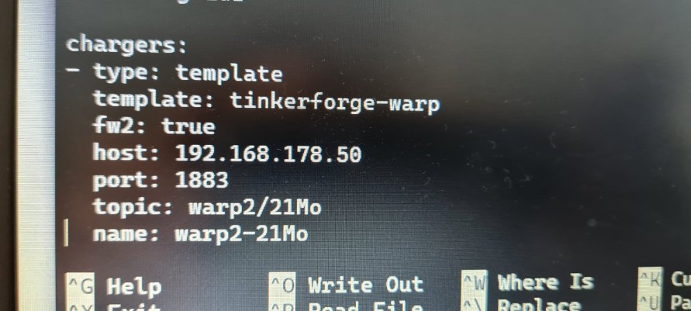 Vielen Fank für die Hilfe bisher.... Erste Fehler konnte ich beheben... Zum Einbinden des Warp2 ist noch dieser Fehler offen. Eingegeben hab ich dies: MQTT ist leider auch immer noch nicht aktiv
