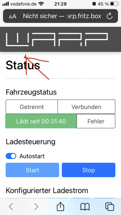 4. Hallo zusammen, ich reihe mich mal mit ein. Gestern Abend hing auch meine WARP1 mit NFC Bricklet (war nicht das erste Mal, habe mir jedoch leider bisher nicht notiert wie das Fehlerbild war und wann es das letzte Mal auftrat. Dürfte das zweite oder dritte Mal gewesen sein). Firmware ist die aktuelle 2.0.7. Fehlerbild wie folgt: - Beim Anstecken des Autos ging der LED Ring an, leuchtete jedoch dauerhaft - NFC Chip wurde nicht erkannt bzw. Box reagiert nicht darauf - Ladevorgang konnte folglich auch nicht gestartet werden - Webinterface war über den integrierten AP erreichbar, zeigte jedoch keinerlei Daten an (Das Burger Menü war leer, auf der Statusseite waren keine Daten eingetragen, sah aus als würde die API hängen) Nach dem Trennen vom Netz funktioniert die Box wieder ohne Probleme.