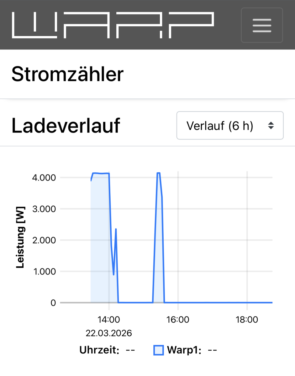 Hallo zusammen, mir ist heute etwas Seltsames aufgefallen: Mein Warp1 Charger hat beim PV-Überschussladen nur etwa 1,3 kW Ladeleistung angezeigt – also eindeutig einphasig. Das ist ungewöhnlich, denn der Warp1 kann ja technisch nur 3-phasig laden, und so ist er bei mir auch eingestellt. Eine automatische Phasenumschaltung gibt es ja beim Warp1 nicht. Mein Fahrzeug ist ein Hyundai Inster Select, der 3-phasiges Laden unterstützt. Trotzdem hat der Ladevorgang laut Anzeige im EVCC-Dashboard und in der Warp-Oberfläche über längere Zeit nur einphasig stattgefunden. Ich finde es natürlich super, dass der PV-Überschuss so effizient genutzt wurde – aber technisch sollte das eigentlich gar nicht möglich sein. Vielleicht kann jemand erklären, wie das zustande kommt? Evtl. ein Messfehler, ein Fehler in der EVCC-Leistungsregelung oder ein Problem mit der Phasenzuordnung? Screenshots habe ich unten angehängt. Danke schon mal für jede Einschätzung – vielleicht kann das ja jemand reproduzieren oder bestätigen.
