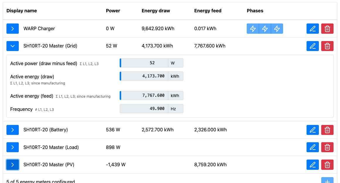 Da habe ich mich dann wohl nicht tief genug in den Python-Code gewühlt. Ich werde das morgen beim Laden nochmal nachvollziehen und versuche bis dahin den Stromzähler vom Netzbetreiber mit in HA zu bringen. Vielleicht bin ich auch nur einem Mess- bzw. Verständnisfehler auf meiner Seite aufgesessen. Ich bilde mir nämlich ein, dass es bisher funktioniert hat. Aus dem inneren Spieltrieb heraus habe gestern ich in meiner WARP2 alle externen Stromzähler gelöscht und neu angelegt, seitdem scheinen die Werte nicht mehr zu stimmen (vielleicht ist es ja mit dem Umstellen des Grid-Meters wie von @MatzeTF angemerkt schon erledigt).