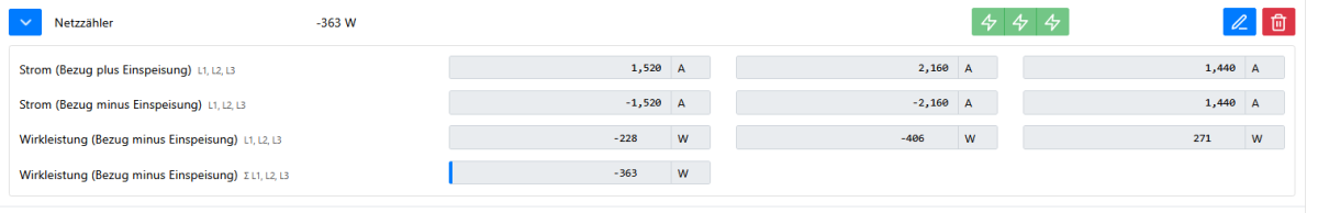 Hmm. Ich sehe da momentan nicht, wie das das "Scripting" von dem Tasmota-Adapter hergeben würde. Aber vielleicht muss ich das nur erstmal eruieren. Was noch interessant ist, wegen: Ich habe am PV-Erzeugungs-Zähler auch einen solchen Tasmota-Lesekopf dran. Bei dem sind die Ströme, die der vom Zähler übermittelt, anscheinend entsprechend der Wirkleistung, ohne Blindleistung. Denn da ist ziemlich genau P = V * I.