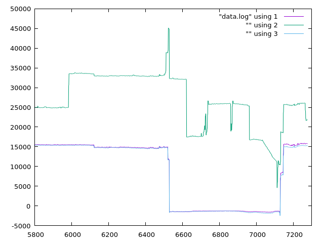 Hier die extrahierten Stromverläufe. Die X-Achse sind Samples in Halbsekundenschritten. Ungefähr bei Sample 6300 wurde die 45 A-Überschreitung innerhalb weniger Sekunden beendet. Nachdem die anderen Verbraucher ausreichend lange ihren Bezug reduziert hatten, wurde die Ladung fortgesetzt. Ungefähr bei Sample 6150 sieht man eine kleine Stufe auf allen drei Phasen. Ich vermute, dass das der Zeitpunkt war, an dem die Ladeleistung auf 12,918 A reduziert wurde, was die Reaktion auf den seit Sample 6000 anhaltend hohen Strombezug war. Der Strombedarf des größten Einzelverbrauchers ist übrigens die größte tolerierbare erwartete Bezugsspitze. Die Absenkung des Ladestroms auf 12,918 A war dazu da, um genau die 16 A Reserve zu haben. In diesem Fall war die Spitze bei Sample 6300 ca. 12 A hoch. Da waren also noch 4 A plus Sicherheitsabstand Platz, bevor die Sicherung fliegen könnte. Wie du siehst, ist die von dir erwähnte kurzzeitige Überlastung bereits mit eingeplant. Bei uns wird nichts verschenkt. 😎 Ich würde sagen, das dynamische Lastmanagement hat exakt so reagiert, was es soll, und es wurde nicht unnötig oder zu früh abgeschaltet. Auffällig ist, dass L1 und L3 sehr dicht beieinander liegen. Anhand der L2-Kurve würde ich schätzen, dass da verschiedene Verbraucher abwechselnd und teilweise gleichzeitig aktiv waren. Anscheinend sind einige größere Verbraucher bei dir ungünstig auf L2 gehäuft. Was das ist, weiß ich natürlich nicht. Die Detektivarbeit überlasse ich dir. 😉