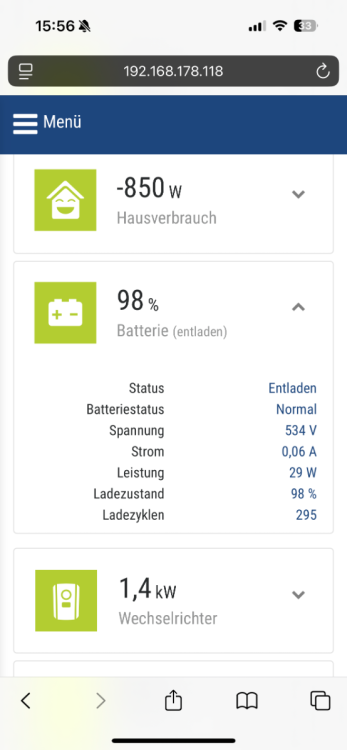 Vorab noch einige Beobachtungen von mir. Also von den angezeigten Leistungswerten der beiden Wechselrichter und der MPPT Erweiterung kann ich nur den Wert von PV1 und PV2 der MPPT Erweiterung als richtig zuordnen. Alle anderen angezeigten Leistungswerte machen keinen Sinn.
