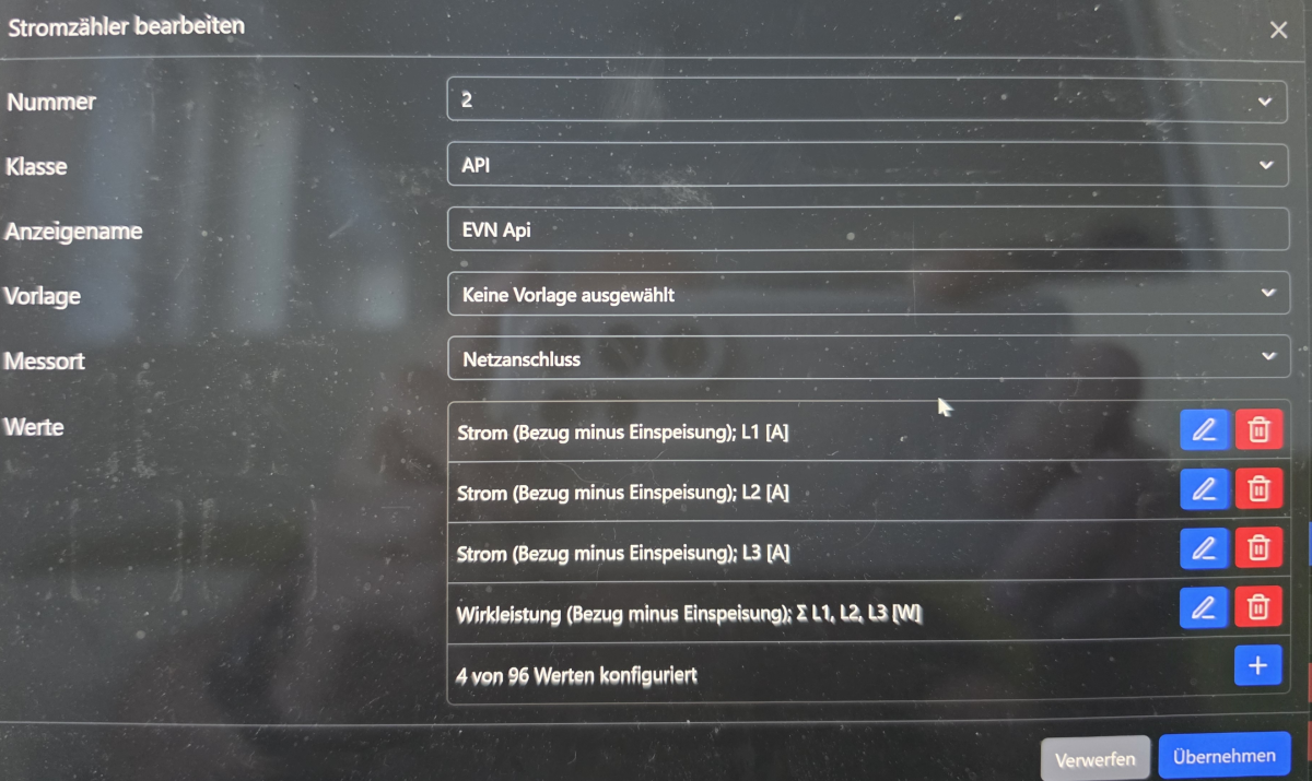 Dann werden die Werte nicht richtig zugeordnet. Mit der 2.9.0 funktionierte es auf jeden Fall. Die Einstellung bleiben, kann den Zähler aber noch immer nicht auswählen