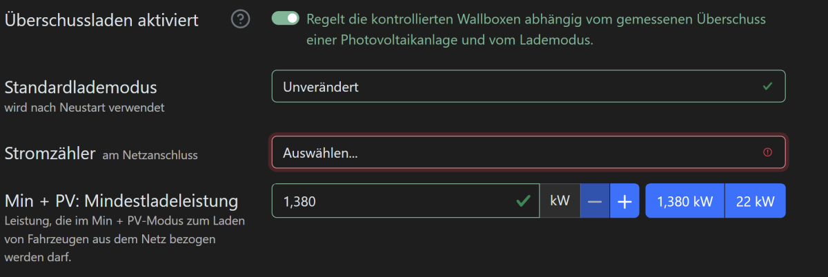 Hallo, PV Überschussladen funktioniert zwar aber ich kann meinen Zähler dafür nicht auswählen (ist ausgegraut) - was hats da?
