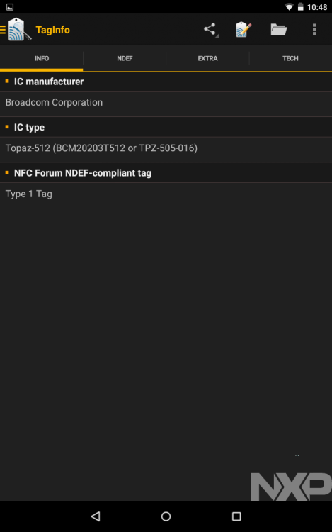 Hallo TF Team, ich habe neben den Forum Type 2 Tags aus dem Shops nun auch ein paar Forum Type 1 Tags (Topaz 512 Chip - http://www.amazon.de/gp/product/B00GYM3SG6?psc=1&redirect=true&ref_=oh_aui_detailpage_o00_s01). Aber es sieht so aus, als könne ich nur die ersten 14 Pages a 8 Bytes lesen (den 1. Block). Lese ich weiter, dann bekomme ich 0-Bytes und ab Page 33 kommen wieder die Daten, die ab Page 1 auch standen?? (Sowohl mit brickv, als auch mit meinem Programm) D.h. mit dem NFC-Bricklet kann ich nur die ersten 96 Bytes korrekt lesen, mit dem Tablet aber auch den Rest, da steht noch mehr drauf... Sind die Forum Type 1 so unterschiedlich und dieser wird nicht unterstützt? Viele Grüße