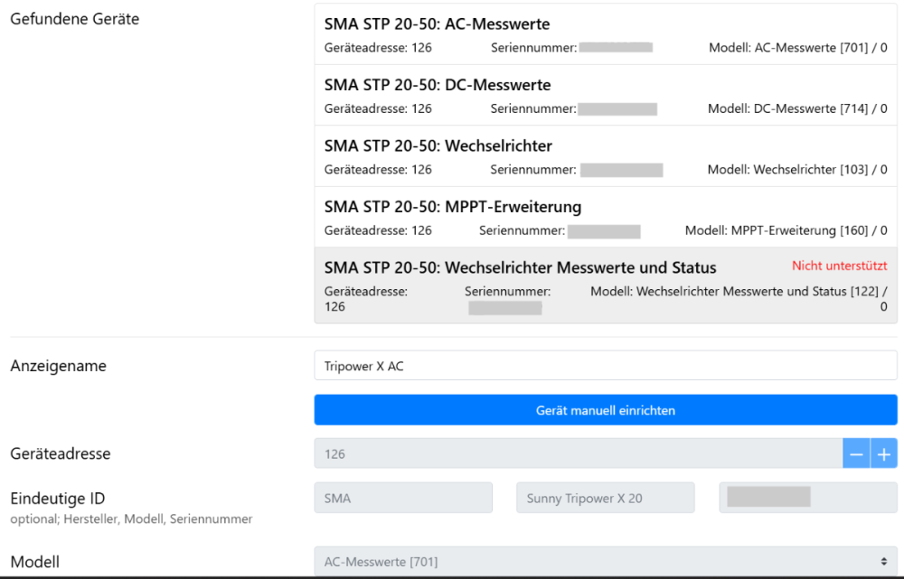 Hi, ich habe meinen SMA Tripower Wechselrichter in der Warp3 als Stromzähler über Sunspec eingebunden. Nach einem Firmware-Update durch SMA auf 3.14.22.R funktioniert der Stromzähler in der Warp nicht mehr, bzw es werden keine neuen Messwerte mehr empfangen. Wenn ich bei der Stromzähler Konfiguration im Warp Webinterface die Sunspec Ports scanne, wird der SMA weiterhin gefunden. In den Release-Notes von SMA zur 3.14.22.R habe ich den folgenden Hinweis gefunden: •Verfügbarkeit weiterer SunSpec Modbus Modelle 101, 120, 121, 122, 160; siehe auch techn. Information https://files.sma.de/assets/280725.pdf Könnt ihr euch das bitte mal kurz anschauen, was sich da im Protokoll geändert hat? Debug-Report anbei. warp3-2bBb-Debug-Report-2025-10-25T12-29-16-968.txt