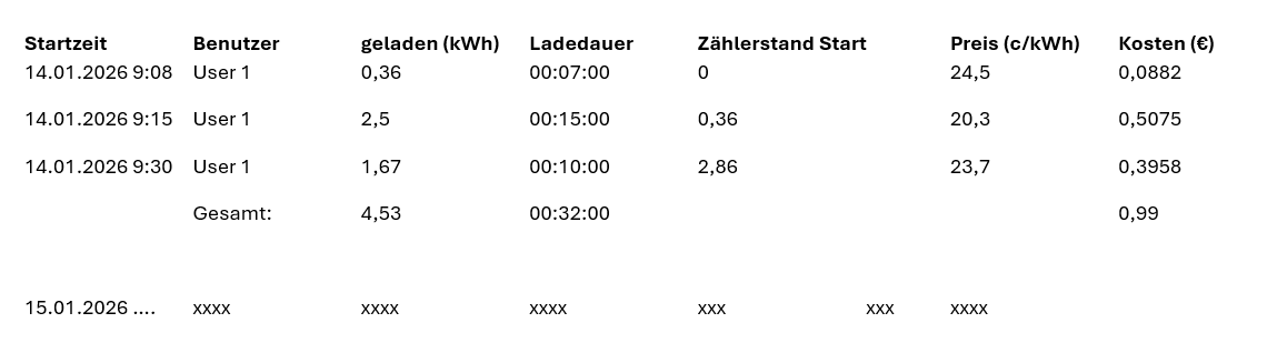 Hey Leute! ich schließe mich hier mal an. Angenommen, eine große Installation (30 Wallboxen (fix dem Nutzer zugeordnet) + WARP Energy Manager 2.0) in einer TG einer WEG. Die Hausverwaltung muss 1x Jährlich Strom von den Nutzern abrechnen. Um möglichst einfach das der Verwaltung zu machen wäre meine Idee: Pro RFID (bzw. Wallbox) an gewünschtem Tag im Jahr senden alle Wallboxen eigene Abrechnungen als PDF an eine eMail Adresse der Verwaltung (evtl. noch eine Kopie an den Benutzer) Energy Manager schickt noch "eigene" Abrechnung zusätzlich. Diese Beinhaltet den restlichen Strom (die Energymeter, Accepoint Switch und was auch immer Strom brauchen) + Grundgebühr die man als Konstante hinterlegt (Da drin kann z.B. Zähler/Stromtarif Grundgebühr, SIM Karte/Internet sein oder auch Verwalterpauschle). Diese Zusatzabrechnung teilt dann der Verwalter unter den Nutzern in gleichen Teilen auf. Non-Plus Ultra: Energie Manger teil die Zusatzkosten selbst auf und addiert diese zu den Wallbox/RFID Kosten. So weiß jeder Nutzer selbst wie viel er genau überweisen soll. Man könnte es auch einfach machen: in Jeder Wallbox Pauschal einen Betrag hinterlegen der dazu addiert wird (man kann ja "Extrastromvebrauch" hochrechnen und "pauschal" mit Grundgebühr Anteilen abrechnen). So müsste Verwalter gar nichts mehr tun, außer schauen, das die Kosten beglichen sind. Viele Verwaltungen weigern sich einzeln die Wallboxen zu checken um den Verbrauch herauszufinden.