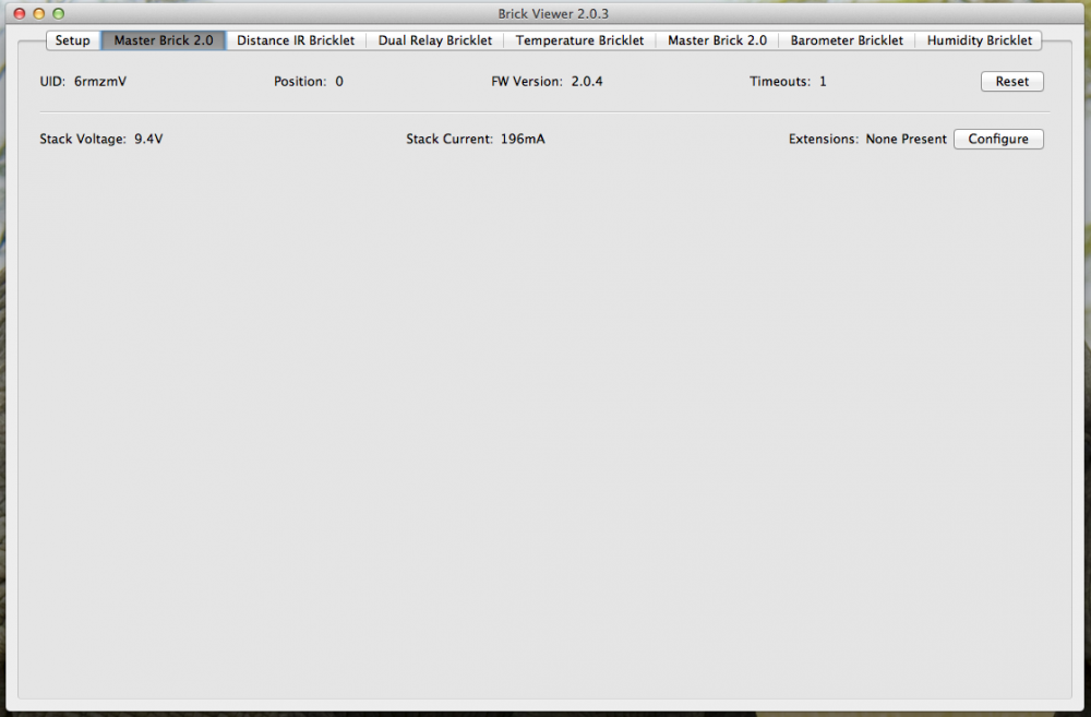 Personally, the way I would tackle this is not to hide UI elements depending on availability or not of target firmware, but to disable elements, plus add tooltips that give the user a friendly hint, like "Requires Master Brick firmware Vx.y, your Master runs Vz.q". But point taken, I need to disassemble my stack in my cellar, upgrade firmware (on 2nd floor, next Mac), then reassemble. Oh well.. that's good for the legs :-) Thx for the explanation, as usual.. -