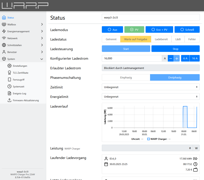 Auf der Web-Oberfläche wird "Min + PV" aber gar nicht angezeigt, nur dann, wenn man z.B. per MQTT-Explorer den "power_manager/charge_mode_update" auf 3 setzt. Auf der Web-Oberfläche gibt es dafür den "eco + PV", der aber den z.Zt. undokumentierten Lademodus 7 hat.