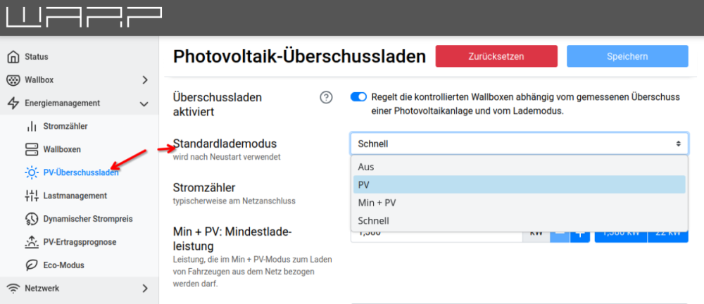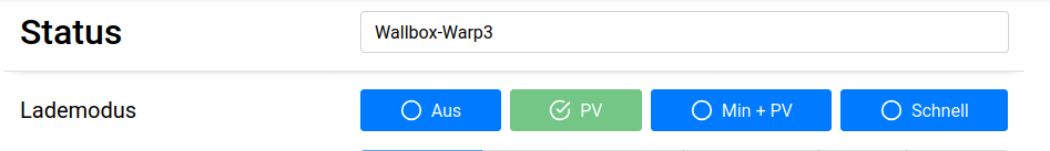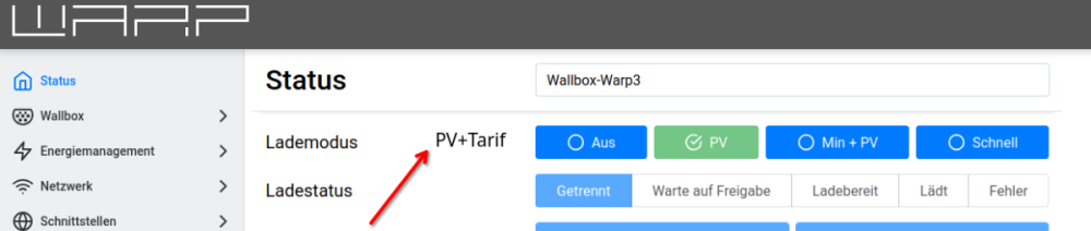 -> Ladestatus->Ladestromgrenzen: Abschalteingang freigegeben (??? sollte hier nicht was anderse stehen?)