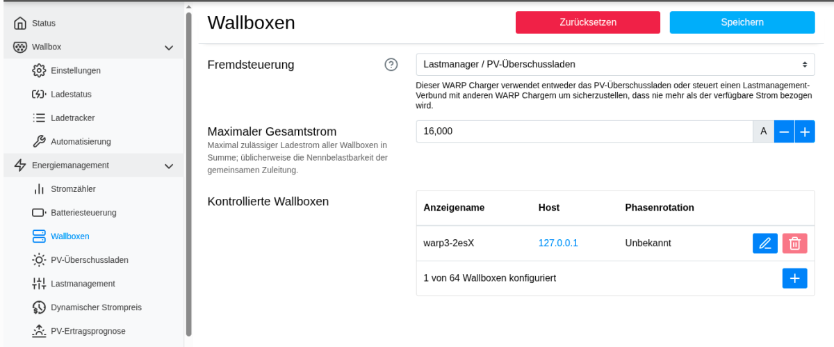 Hi Sts, ich danke Dir! Eigentlich bin ich der Meinung, dass ich schon alles durchprobiert hatte, inkl. der Einstellung "deaktiviert" natürlich (klingt ja auch naheliegend). Nach Deinem Input habe ich es noch einmal probiert. Warp3 neu gestartet, EVCC neu gestartet. -> und auf einmal geht's ! BG Micha