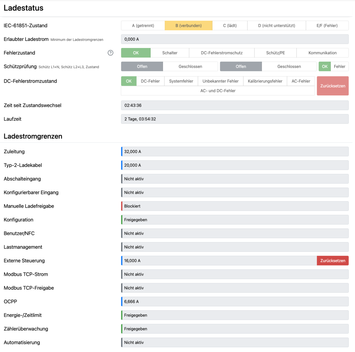 3. Ich habe ein eigenes OCPP 1.6J CS gebastelt. Als CP nutze ich den Warp Charger 3 (Firmware: 2.8.16+69494a37 (erstellt 22.12.2025 14:40:07, von Tinkerforge GmbH) ) Die Kommunikation funktioniert soweit auch reibungslos. Folgendes Charging Profile wird erfolgreich an den CP übertragen: { connectorId: 1, csChargingProfiles: { chargingProfileId: 2001, transactionId: <transaction-id>, stackLevel: 0, chargingProfilePurpose: 'TxProfile', chargingProfileKind: 'Absolute', chargingSchedule: { chargingRateUnit: 'W', chargingSchedulePeriod: [ { startPeriod: 0, limit: 4600, } ], }, }, } Geladen wird trotzdem nicht, das die "Manuelle Lade­freigabe" auf "blockiert" steht. Was muss gemacht werden, damit Ladefreigabe erfolgen kann? Hinweise: Die Wallbox Konfiguration hatte ich zurückgesetzt. Weder Nutzer noch NFC-Tags sind hinterlegt.