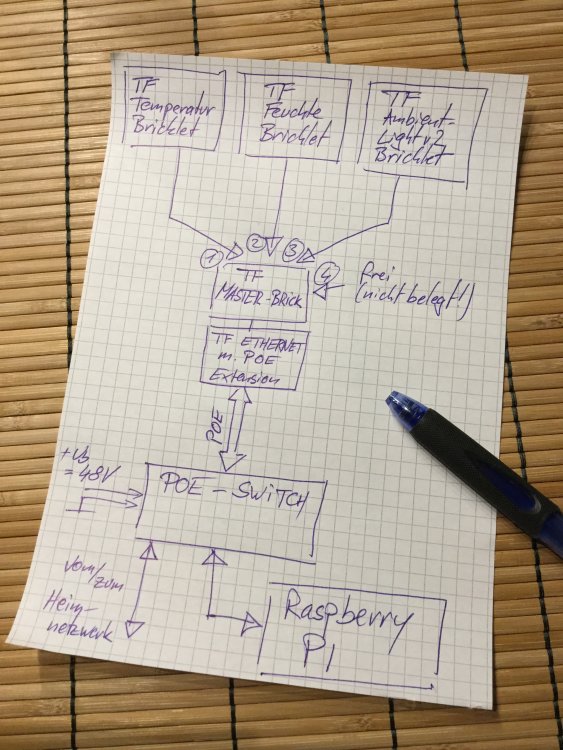 Oupps, leider zu früh gefreut .... Der Daemon wurde zwar geladen, der Viewer aber, kann aber weiterhin keine lokalen Sensoren anzeigen.... Ein Aufruf von brickd im Terminal bringt folgende Ausgabe: brickd 2024-01-22 11:14:31.394767 <I> <main_linux.c:369> Brick Daemon 2.4.5 started (pid: 2142, daemonized: 0) 2024-01-22 11:14:31.394786 <I> <main_linux.c:375> Running on Linux system (sysname: Linux, release: 6.1.0-rpi7-rpi-v8, version: #1 SMP PREEMPT Debian 1:6.1.63-1+rpt1 (2023-11-24), machine: aarch64) libusb: warning [libusb_init] installing new context as implicit default 2024-01-22 11:14:31.411173 <E> <socket.c:244> Could not bind IPv4 server socket to '0.0.0.0' resolved from '0.0.0.0' on port 4223: EADDRINUSE (98) 2024-01-22 11:14:31.411222 <E> <network.c:242> Could not open any socket to listen to 2024-01-22 11:14:31.411375 <I> <main_linux.c:563> Brick Daemon 2.4.5 stopped Klappt also noch nicht ganz ... sorry