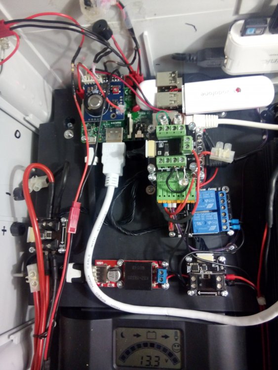 Hallo. ich benutze ein Voltage-Current-Bricklet um die Spannung und den Eigenverbrauch meines Raspberry Pis mitsamt TF-Stack zu messen. Im Anhang findet ihr zwei Fotos vom Gesamtaufbau. - Raspberry Pi B+ - AB RTC Alarm Pi - MasterBrick 2.1 - 2x Voltage/Current Bricklet - Industrial Quad Relais Bricklet - IO-4 Bricklet Die beiden echten Relais (unterm Stack) hängen am Raspberry. Fragt bloß nicht, was ich mit den LEDs am IO-4 mache Zum Thema: Ich experimentiere gerade mit einer GPIO RTC-Uhr mit Alarmfunktion, um den Raspberry und die Bricks zeitgesteuert ein- ausschalten zu können. Funktioniert super Nun wollte ich bei ausgeschaltetem Pi den Reststromverbrauch messen. Dazu habe den Master-Brick direkt an meinen Laptop geklemmt. Verbindung klappte prima, aber die beiden Voltage/Current Bricklets zeigten nur noch ca 0-3mV Spannung. Die Stromstärke erscheint plausibel (39mA bei 12,7V ). Wenn ich alles über den Raspberry betreibe klappts prima. Ich vermute ja selbst, dass es irgendwo an gemeinsamer Masse mangelt. Aber wo? Interessiert mich einfach nur warum das nötig zu sein scheint. Das Bricklet hat doch + und - von der Batterie. Sollte meines Erachtens nach ausreichen. Der ganze Kasten wird natürlich von einem 12V Bleiakku betrieben, der Laptop vom eigenen Akku.