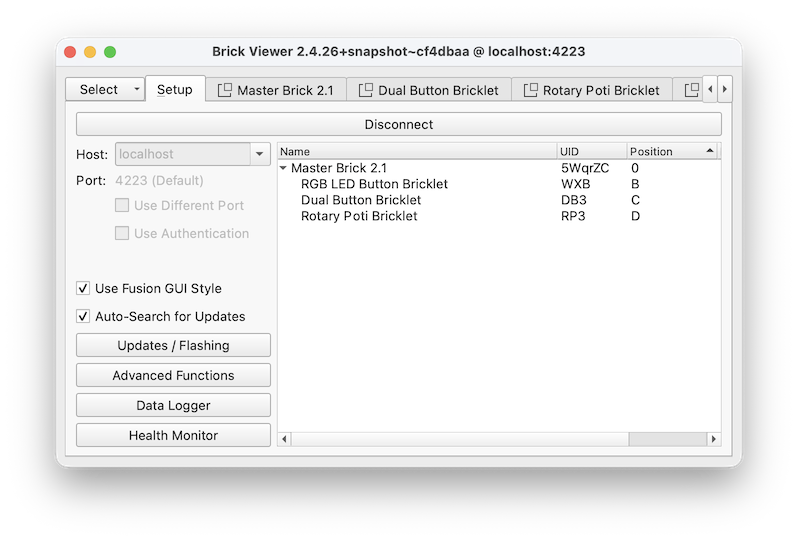 python seem to be slightly different on both machines. I am not a python person. I probably messed up python on the Mac mini while it is ok for Brickv on the MacBook Pro. There is Python 2.7.18 (python --version, /opt/homebrew/bin/python2) and Python 3.14.3 (python3 --version, /opt/homebrew/bin/python3) on both machines. Probably python installations are slightly different on both machines … But, honestly, I do not know what happens under the hood. I, too, do not succeed to get the Brickv branch running.