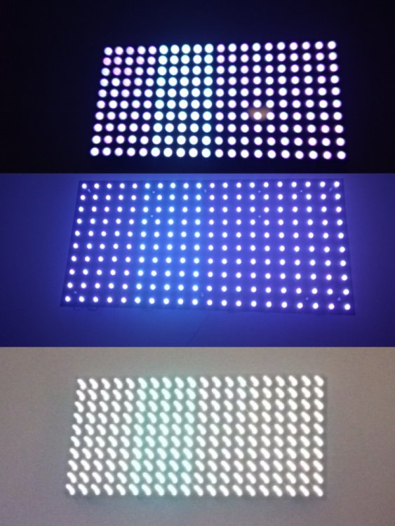 hi Community, mein Blinkenlights funktioniert über WIFI Extension grundsätzlich einwandfrei, jedoch sind die LEDs vom Bündel 2 [Pixel 51 bis 100] unterschiedlich hell (im Brickviewer alle 200 LEDS). Auf dem Foto kann man es etwas erkennen. Was kann die Ursache sein? Herstellungstoleranzen? Danke vorab für eure Hinweise und Tipps