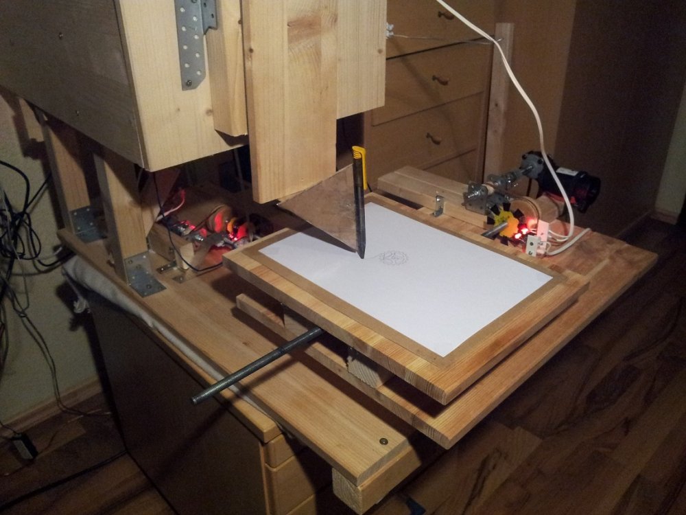 Ich habe ein Bild meiner Fräse angehangen, als sie noch nicht ganz fertig war. Die Auflagefläche bewegt sich in X und Y richtung, der Fräskopf ist fest und bewegt sich nur auf der Z-Achse, damit ist es glaube ich keine Portalfräse mehr, oder? Eine Umdrehung des Gewindes bewegt die Auflagefläche einen Millimeter, es gibt jedoch ein leichtes spiel von ca. 1/3mm. Ich habe es letztens auch mit einer Übersetzung versucht, sie hing jedoch auf der einen Seite direkt am Motor und die Seitwertsbelastung hat dazu geführt dass das Getriebe nach einiger Zeit versagt hast. Vielleicht werde ich es aber nochmal mit einer Aufängung probieren, damit kein seitlicher Zug auf dem Motor liegt. Die Auflagefläche ist weniger cm größer als A4. Danke für deinen Link. Die Motoren in meiner Preisklasse laufen mit geringer Voltzahl, brauchen aber mehr Ampere, als mein Netzteil leisten kann. Ich habe jedoch einige alte Routernetzteile mit 5V/2A und einer der Motoren braucht 4V/2A. Ich hatte gelesen, das man diese Motoren eh lieber mit etwas höherer Voltzahl betreiben sollte, das klingt also erstmal ganz passend, oder?