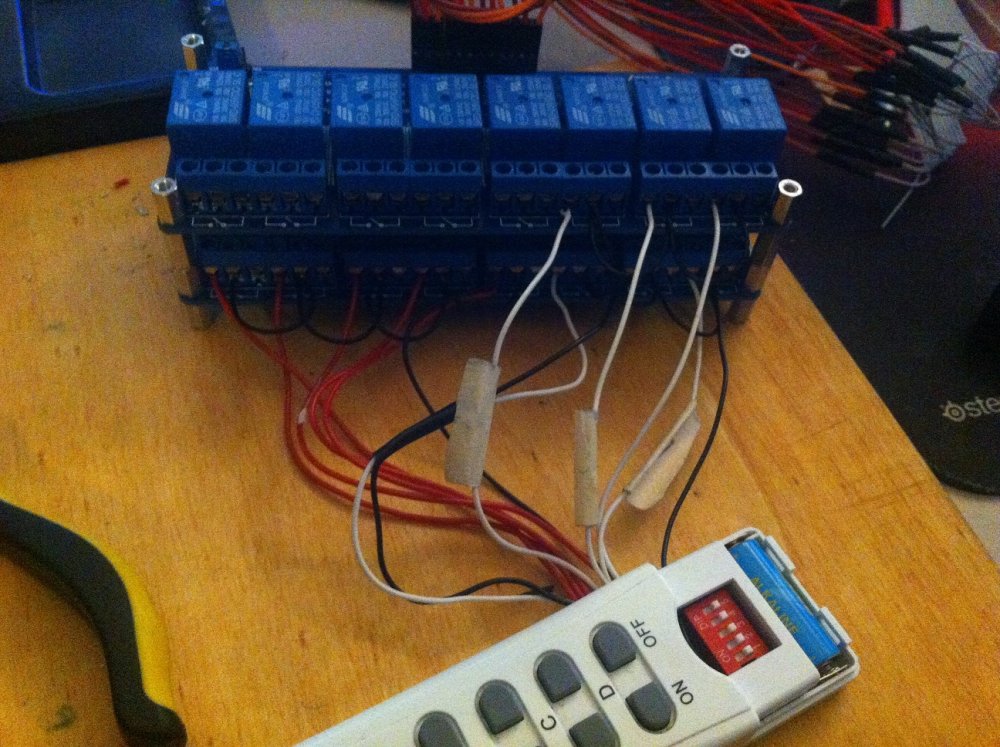 Moin all so heute habe ich endlich meine Relay mit der Fernsteuerung meiner Funksteckdosen Verbunden. damit kann ich jetzt genau 128(2^5*4=128) Funksteckdosen ansteuern. Bilder wie immer im Anhang. Gruß masder
