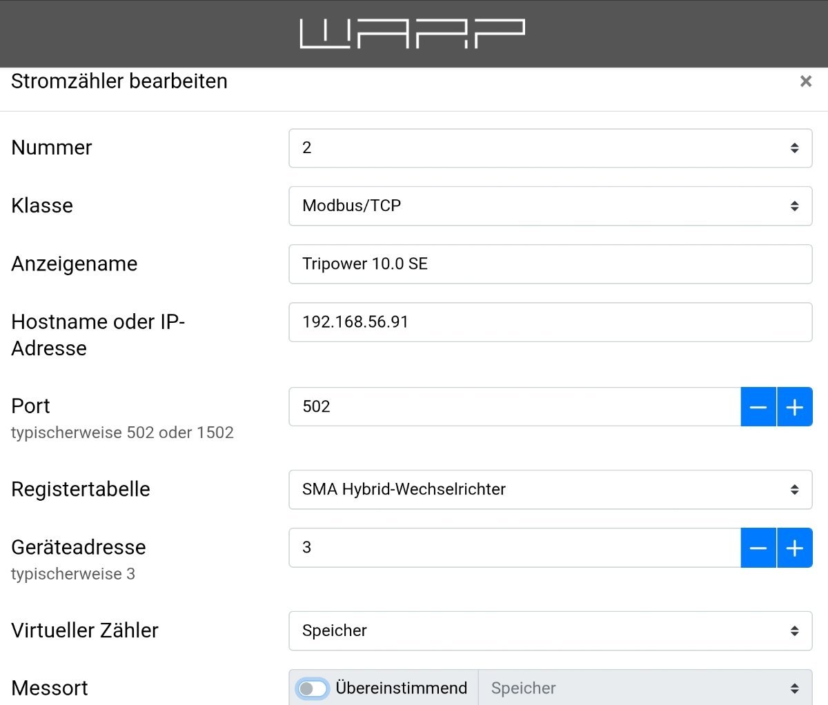 meierchen006 Geschrieben October 23, 2025 at 11:02 Geschrieben October 23, 2025 at 11:02 Hallo, ich habe meine Warp3 Smart seit gestern. Inbetriebnahme lief Problemlos. Als erstes habe ich bei mir einen Shelly pro3EM in der Warp3 Smart eingerichtet (der war schon im Zählerschrank verbaut nur für die Wallbox). So wurde aus der Warp3 Smart eine Warp3 pro (ohne geeichten MID Zähler) normaler Zähler reicht mir aus. Als nächstes habe ich dann meinen SMA HM2.0 eingerichtet als Zähler am Netzanschluss: Als drittes habe ich dann den Wechselrichter SMA Tripower SE als Zähler für den Speicher eingerichtet: Erst danach war es mir möglich unter [Energiemanagement] PV-Überschussladen einen Stromzähler für den Batteriespeicher auszuwählen: Ich hoffe das ich dies so richtig gemacht habe. PV Ertragsprognose habe ich ebenfalls vorgenommen, ging auch Daten sind vorhanden inwiefern die Stimmen wird sich zeigen: Was ich noch nicht herausgefunden habe ist, Ein Fahrzeug zu hinterlegen wie hierunter Lastmanagement: Hinzufügen würde ich einen Skoda Elroq wollen, der aber noch nicht da ist. Hat noch jemand Infos was zu beachten ist mit einer SMA PV Anlage, sollte ich für das Lastmanagement noch den Zähler der Wärmepumpe und WW-Heizstab hinzufügen oder Haushaltsstrom ? alle gehen nicht da nur 2 Zähler frei sind ich hätte aber noch drei zum einrichten! Bleibt die Frage welche mehr Sinn machen? Zitieren