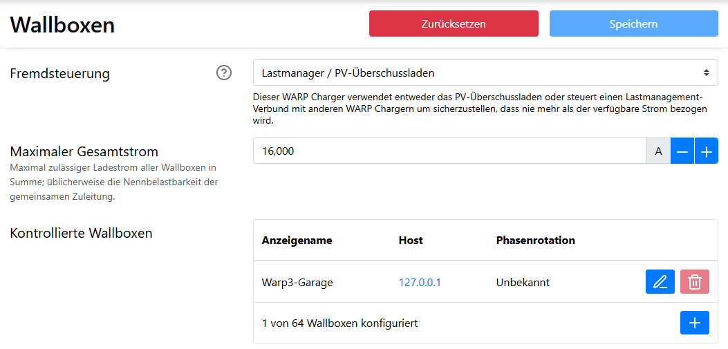 MatzeTF Geschrieben October 23, 2025 at 13:37 Geschrieben October 23, 2025 at 13:37 Quote Ich hoffe das ich dies so richtig gemacht habe. Bei Zähler Nummer 2 (also der dritte) für den Batteriespeicher hast du einen abweichenden Messort eingestellt. Das muss auf „Übereinstimmend“ stehen, was dann automatisch „Speicher“ als Messort auswählt. Quote Was ich noch nicht herausgefunden habe ist, Ein Fahrzeug zu hinterlegen wie hierunter Lastmanagement: Hinzufügen würde ich einen Skoda Elroq wollen, der aber noch nicht da ist. Die Auswahl vom Fahrzeugmodell ist nur für Fahrzeuge, die eine Sonderbehandlung benötigen. Steht dein Fahrzeug nicht in der Liste, braucht es keine Sonderbehandlung und du wählst einfach „Standard“ aus. Quote sollte ich für das Lastmanagement noch den Zähler der Wärmepumpe und WW-Heizstab hinzufügen oder Haushaltsstrom ? Das wäre rein kosmetisch. Die Wallbox verwertet aktuell nur Zählerdaten von der Wallbox selber, vom Netzanschluss und vom Batteriespeicher. Zitieren